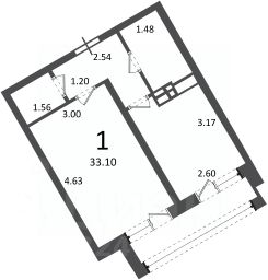 1-комн. кв., 33,1 кв.м