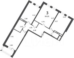 3-комн. кв., 69,2 кв.м