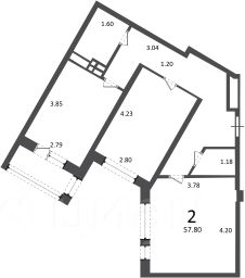 2-комн. кв., 57,8 кв.м