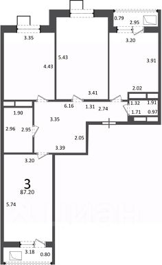 3-комн. кв., 87,2 кв.м