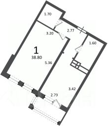 1-комн. кв., 38,8 кв.м
