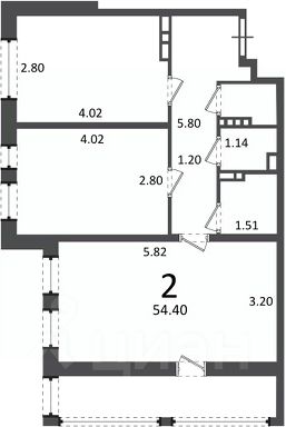 2-комн. кв., 54,4 кв.м