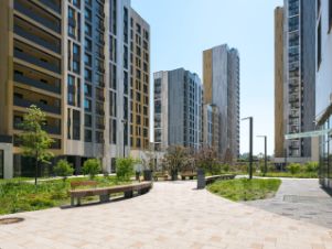 Авторские входные группы, дополнительные помещения для хранения колясок, велосипедов. Закрытый двор, без машин, ухоженная территория, детские и спортивные площадки, велодорожки. Инфраструктура комплекса позволяет не выходить за его пределы, здесь есть всё необходимое для жизни: магазины, аптека, кафе, пекарня, детский сад и школа.