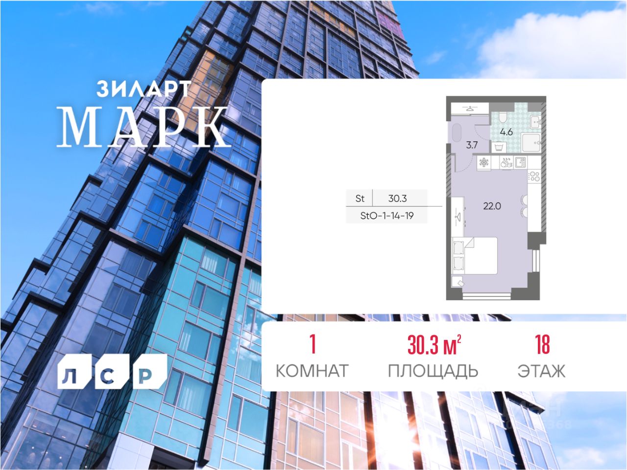 В доме премиум-класса ЗИЛАРТ МАРК продаётся квартира-студия общей площадью 30.3 кв. метров на 18 этаже. Дом располагается в престижном Даниловском районе Москвы в жилом комплексе "ЗИЛАРТ".