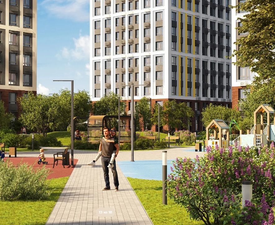 ЖК благоустроен дворами без автомобилей, современными детскими площадками и спортивными комплексами, отапливаемым подземным паркингом.