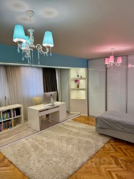 Вторая спальня (детская ). 32,2 кв м. с возможностью сделать две отдельные спальни, каждая со своим входом ( электрика для этого выведена), обьемный шкаф купе, две кровати с ортопедическими матрасами, письменный стол, книжные стеллажи и тумбочки, кондиционер.