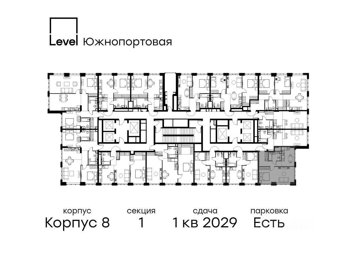 В северной части района Печатники продается 1-комнатная квартира площадью 42.40 кв.м без отделки. Квартира расположена на 20 этаже 49-этажного корпуса 8 в жилом комплексе комфорт-класса Level Южнопортовая (компания Level Group/Левел групп).