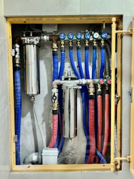 электрическим тёплым полом и фильтрами для воды. Кондиционер в гостиной, в