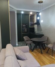 Квартира с дизайнерским ремонтом, выполненным с вниманием к деталям. Просторная кухня гостиная площадью 17 кв. м идеально подходит для семейных обедов и встреч с друзьями. Комнаты светлые и уютные, окна выходят как на улицу, так и во двор. Санузел совмещенный, оформлен в современном стиле и оснащен всем необходимым.