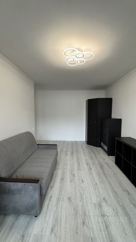 КВАРТИРА: 1-комнатная, 32,1 м² (комната 18 м², кухня 7 м²), 11-й этаж. Балкон, евро-ремонт, совмещённый санузел, потолки 2,7 м. Вся мебель и техника остаются новому владельцу: корпусная мебель ИКЕА, диван, холодильник, плита, стиральная машина. Панорамный вид на Мичуринский проспект и главное здание МГУ — много света и приватности.