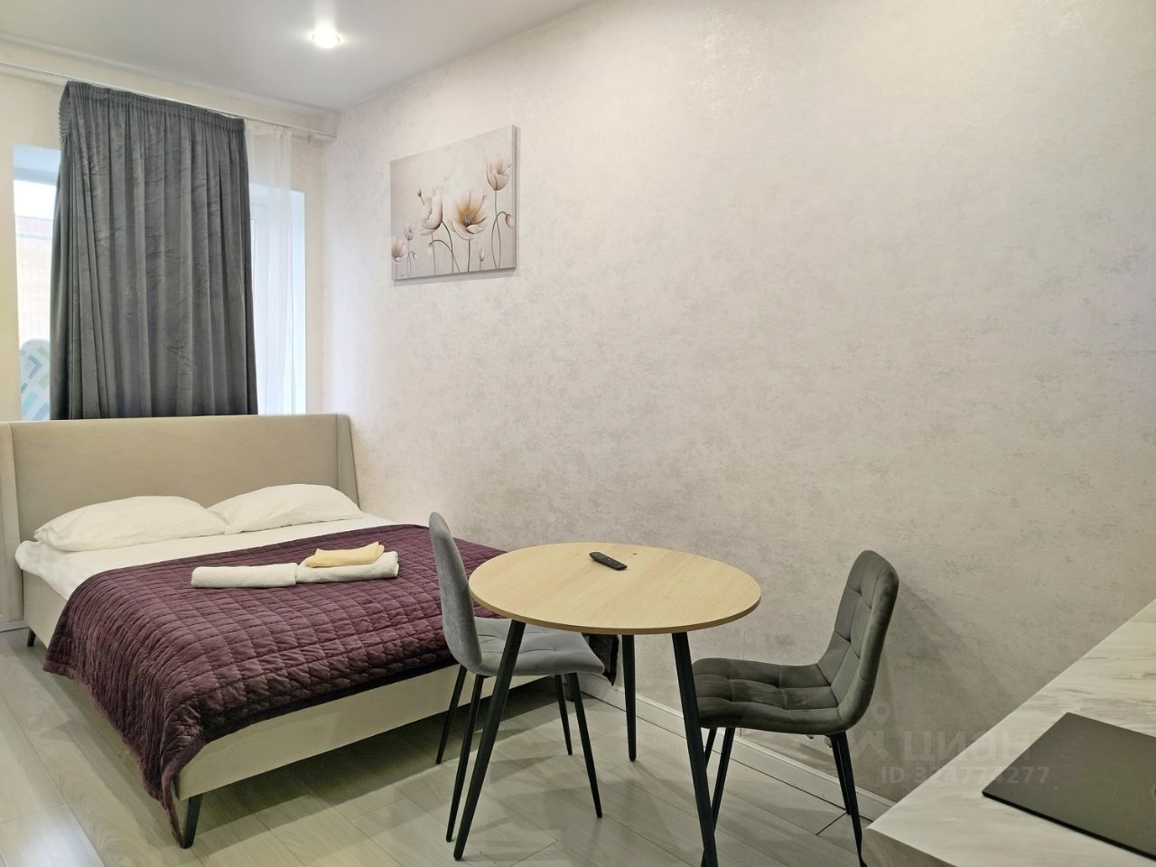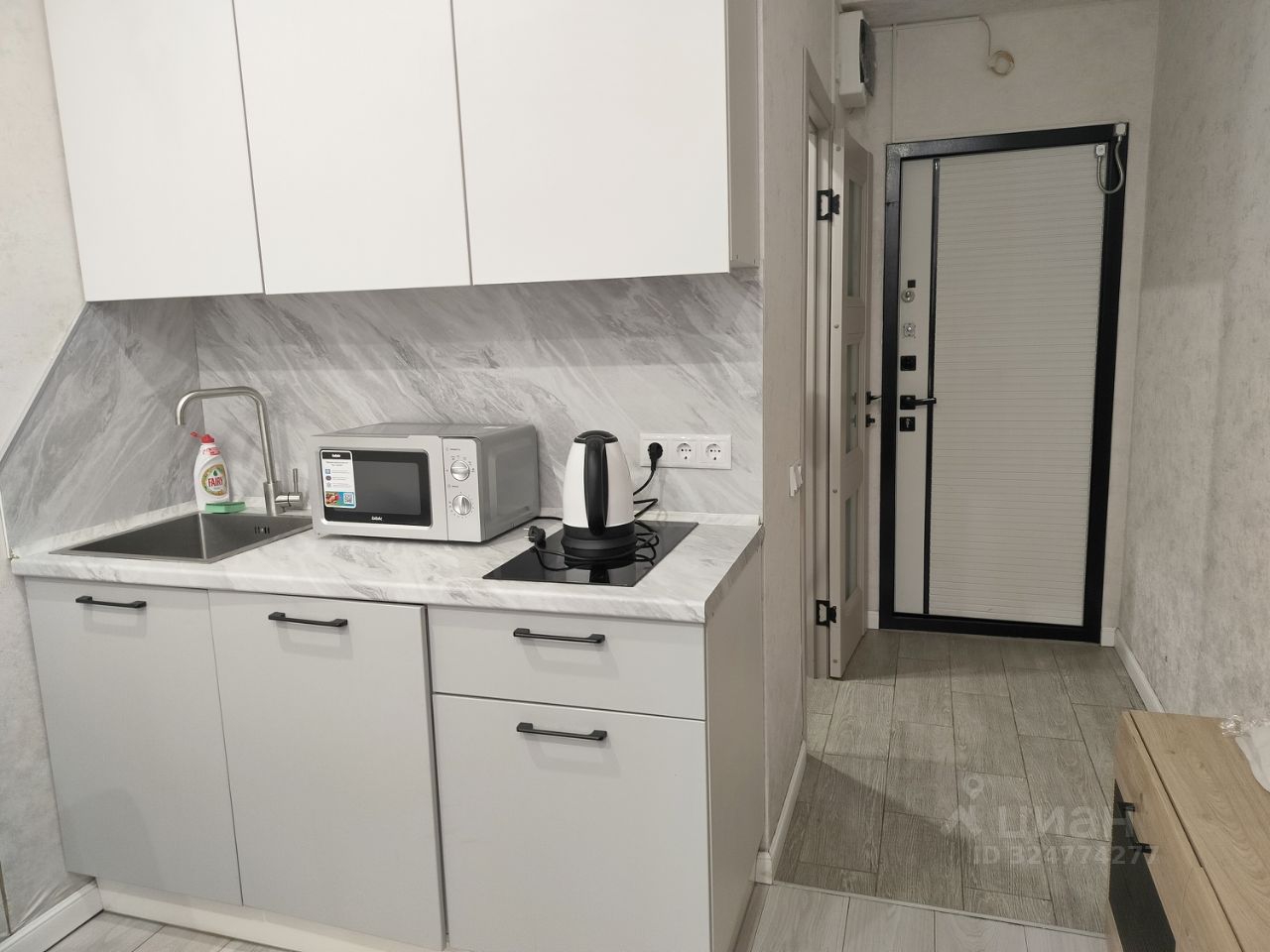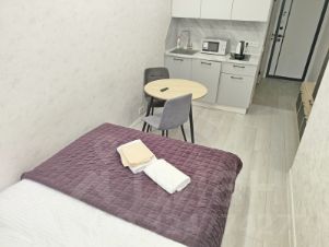 Дизайнерский ремонт 2023г. Общ. пл. 16,2м. Комната 12м. Встроенная кухня. Окна во двор. Санузел совмещен (душ). Лоджии/балкона нет. Огороженная территория, пропускная система, охрана. Есть наземный паркинг на огороженной территории.