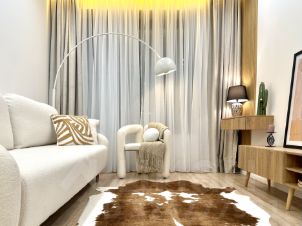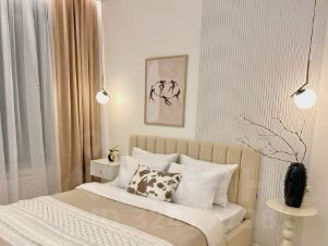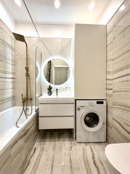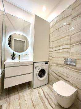В квартире выполнен светлый дизайнерский ремонт, новая мебель и предметы интерьера, большое количество шкафов и мест хранения, встроенная качественная бытовая техника: холодильник, посудомоечная машина, духовой шкаф, индукционная плита, стиральная машина, кондиционер, качественная европейская сантехника. Квартира полностью укомплектована, остаётся всё: мебель, техника, декор, что позволяет покупателю заселиться быстро и без лишних хлопот!