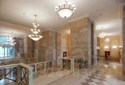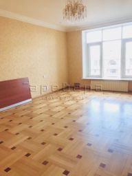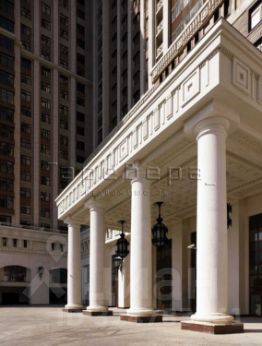В квартире расположена просторная гостиная, плавно переходящая чрез две элегантные колонны в столовую с балконом.