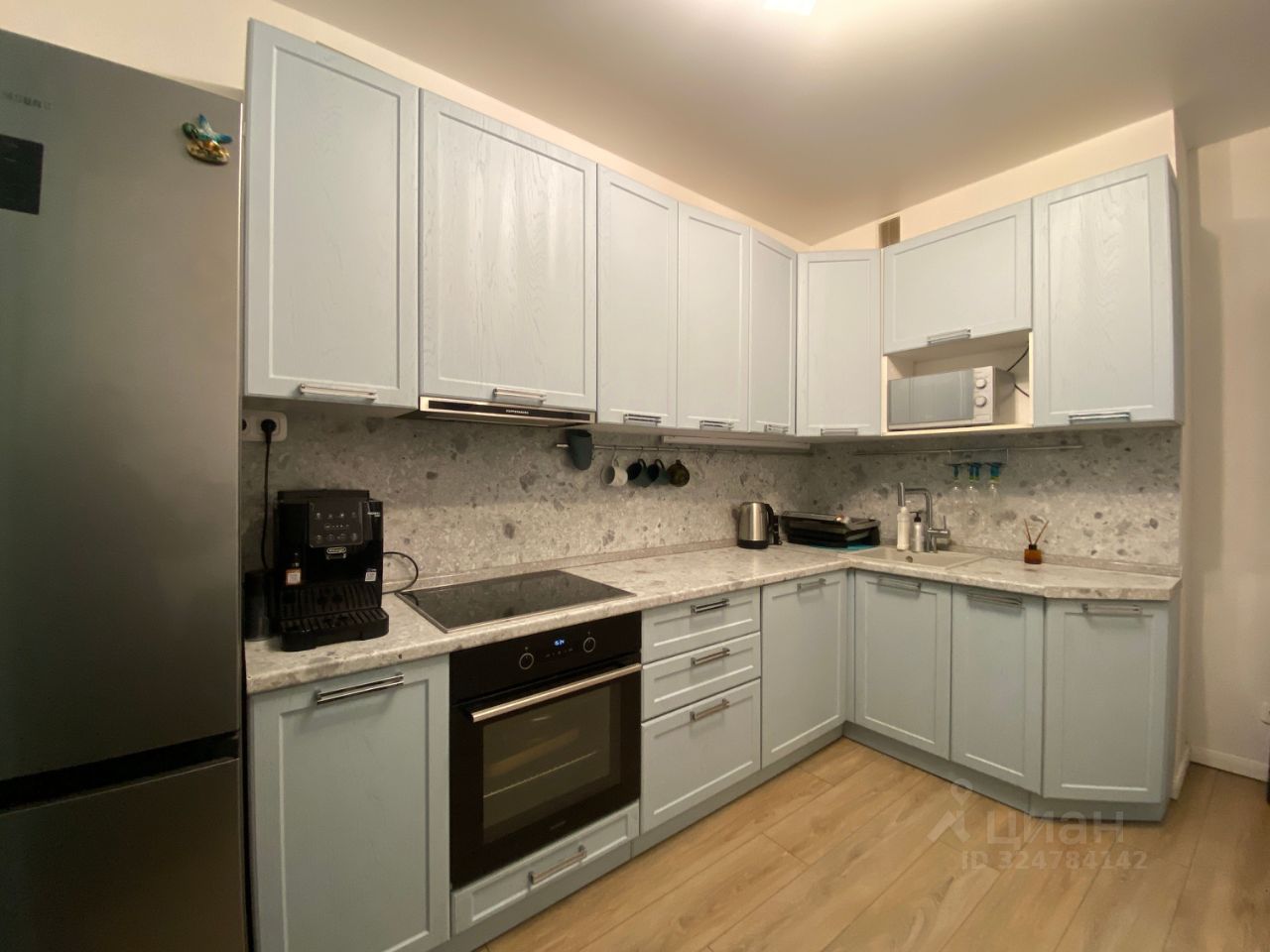 — в квартире остаются: кухонный гарнитур со встроенной техникой, кондиционер, шкафы в гардеробной;