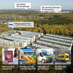 ЖК "Лесная сказка"- новый современный микрорайон малоэтажной застройки г.Троицка. Доступна вся социальная инфраструктура-школа СОШ 2 г. Троицк и Гимназия 6 г.Троицк , детский сад, художественная школа, спортивный центр, взрослая и детская поликлиники, больница РАН.