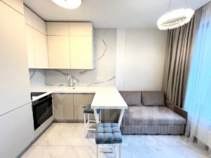 В квартире удобная функциональная планировка: кухня-гостиная (8 кв. м), спальня (10.2 кв. м), гардеробная с прихожей (5,52 кв.м), совмещенный санузел (4,4 кв. м).