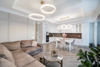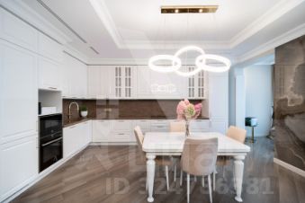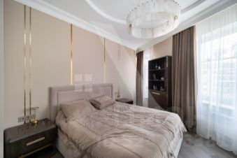 Интерьер выполнен в изысканном стиле современной классики, подчёркивая вкус и статус владельца жилья.