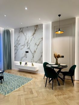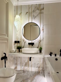 Выполнен качественный ремонт по дизайнерскому проекту, в отделке использовались качественные материалы, инсталляция ТЕСЕ, смесители Lemark, ванна из искусственного камня.