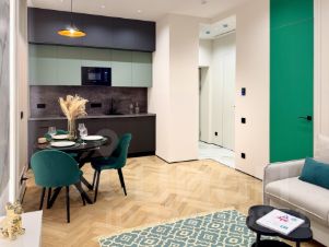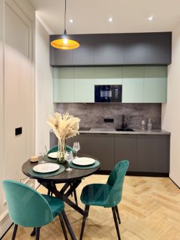 Квартира полностью меблерована, на кухне установлена вся необходимая техника, микроволновая печь, холодильник, индукционная плита, посудомоечная машина.