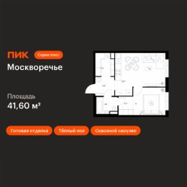 Продаётся 1-комн. квартира площадью 41,6 кв.м на 9 этаже 29 этажного дома (Корпус 2.1, Секция 1) проекта ПИК Москворечье. Светлый просторный подъезд на уровне земли, функциональная планировка, большие окна, c отделкой.