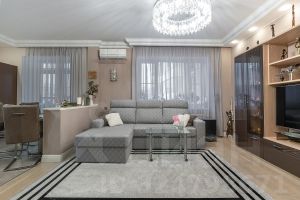 В продаже — уютная, стильная квартира в доме бизнес-класса, построенном из настоящего монолит-кирпича, с подземным паркингом и закрытой территорией.
