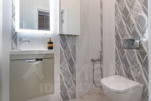 Планировочное решение: просторная кухня-гостиная, спальня с выделенной гардеробной, два санузла: один — с душевой и ванной, второй — гостевого типа; холл.