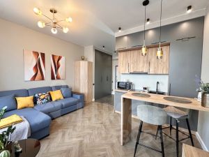 Студия стильная, современная, ремонт делали из самых лучших строительных материалов. Квартира светлая днем, а в вечернее и ночное время освещение можно использовать под свое настроение, для этого в квартире есть осветительных приборы.