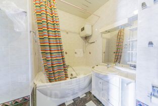 Квартира 225 кв.м. На первом уровне: кухня, гостиная с действующим камином, столовая с высокими потолками (второй свет), основная спальня+гардеробная+ванная комната, гостевой санузел, постирочная. На втором уровне - мансардные окна пуленепробиваемые с обогревом. Большой холл-гостиная, 3 спальни, кабинет, 3 санузла. Кондиционеры. Теплые полы. В квартире 2 телефонные линии. Фиксированное машиноместо на наземной парковке в охраняемом внутреннем дворе.