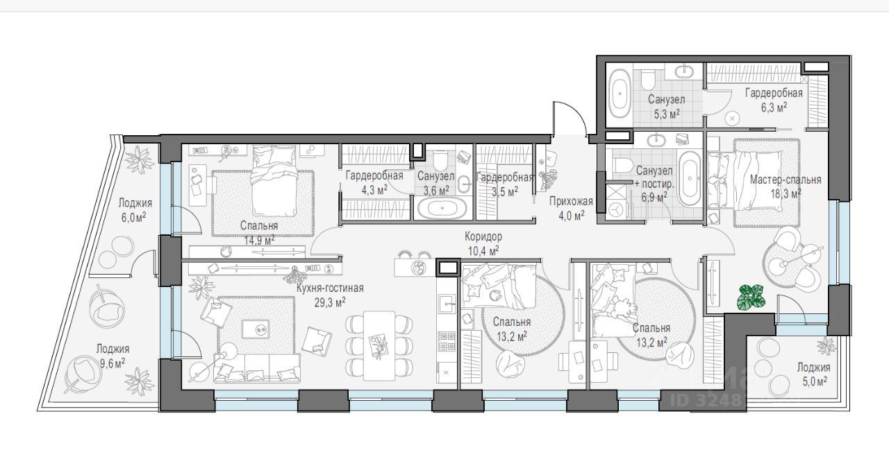 Площадь кухни29,3 м²