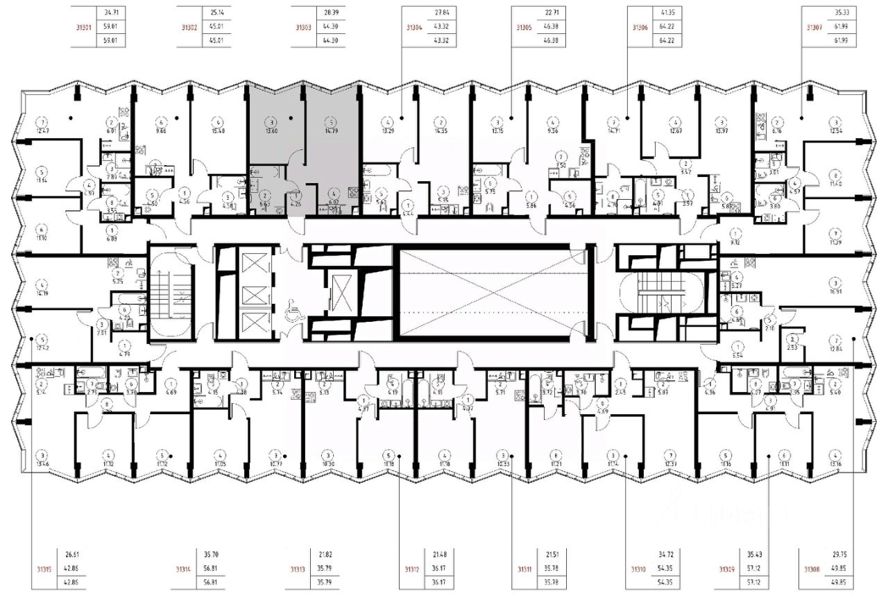 Продаётся 1-комнатная квартира общей площадью 44.30 м² без отделки в доме премиум-класса МИРА на 13-м этаже 24 этажного дома. Квартира расположена в корпусе 3.