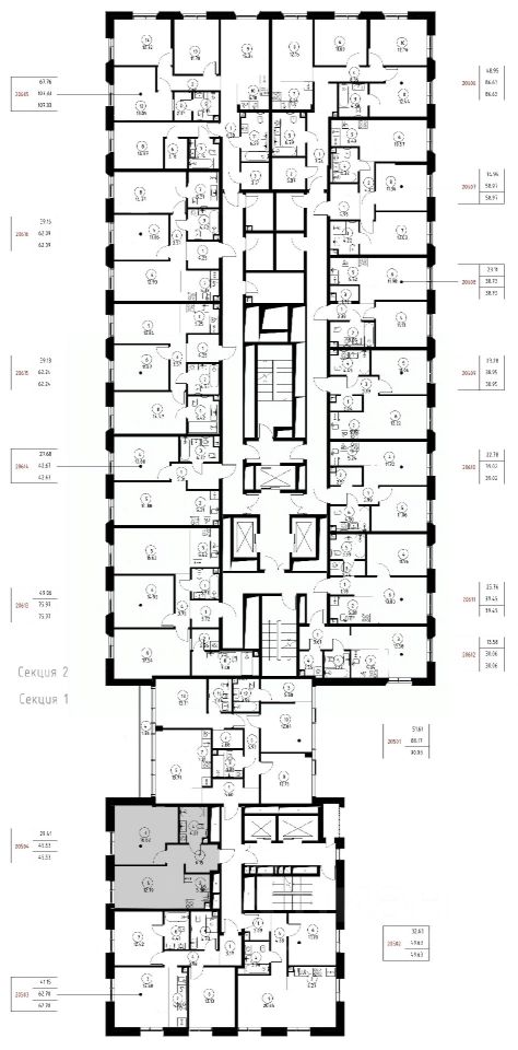 Продаётся 1-комнатная квартира общей площадью 45.53 м² без отделки в доме премиум-класса МИRА на 5-м этаже 23 этажного дома. Квартира расположена в корпусе 2.