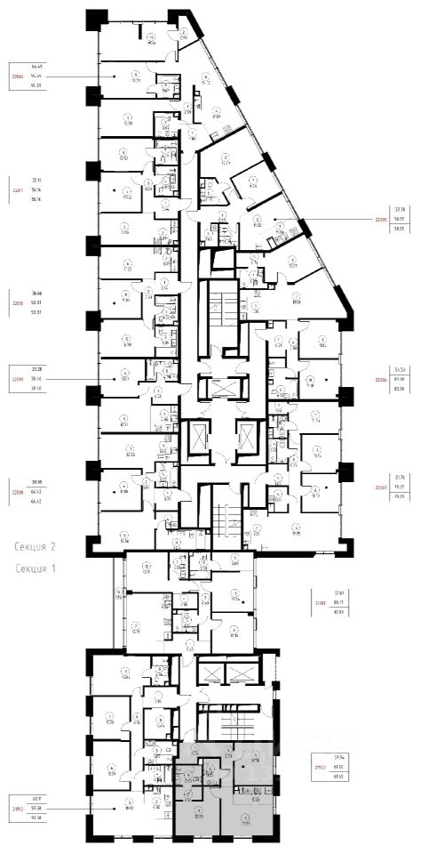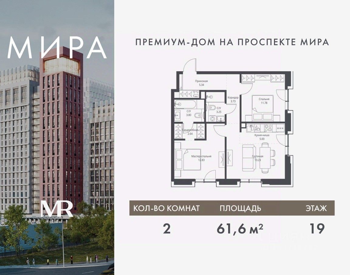 Продаётся 2-комнатная квартира общей площадью 61.60 м² без отделки в доме премиум-класса МИРА на 19-м этаже 23 этажного дома. Квартира расположена в корпусе 2.