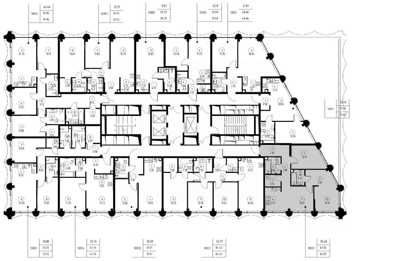 Продаётся 2-комнатная квартира общей площадью 69.82 м² без отделки в доме премиум-класса МИРА на 8-м этаже 17 этажного дома. Квартира расположена в корпусе 1.