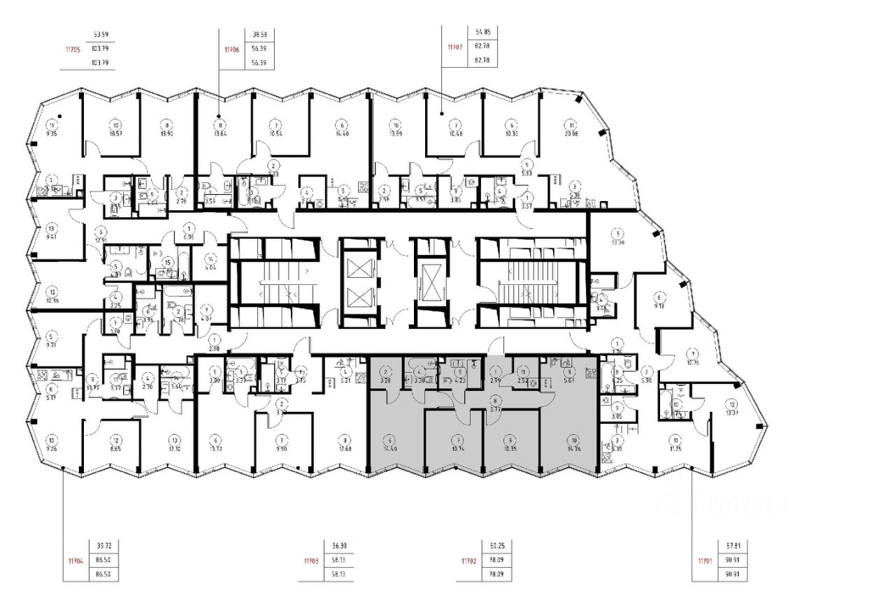 Продаётся 3-комнатная квартира общей площадью 78.09 м² без отделки в доме премиум-класса МИРА на 17-м этаже 17 этажного дома. Квартира расположена в корпусе 1.