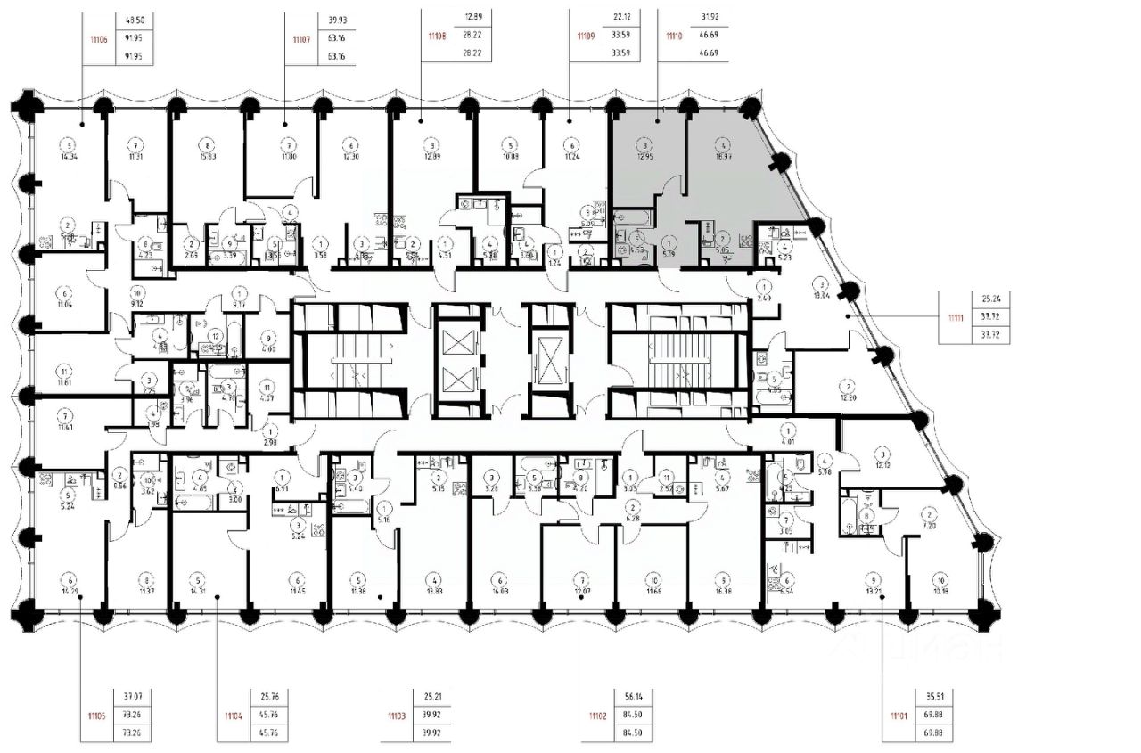 Продаётся 1-комнатная квартира общей площадью 46.69 м² без отделки в доме премиум-класса МИРА на 11-м этаже 17 этажного дома. Квартира расположена в корпусе 1.