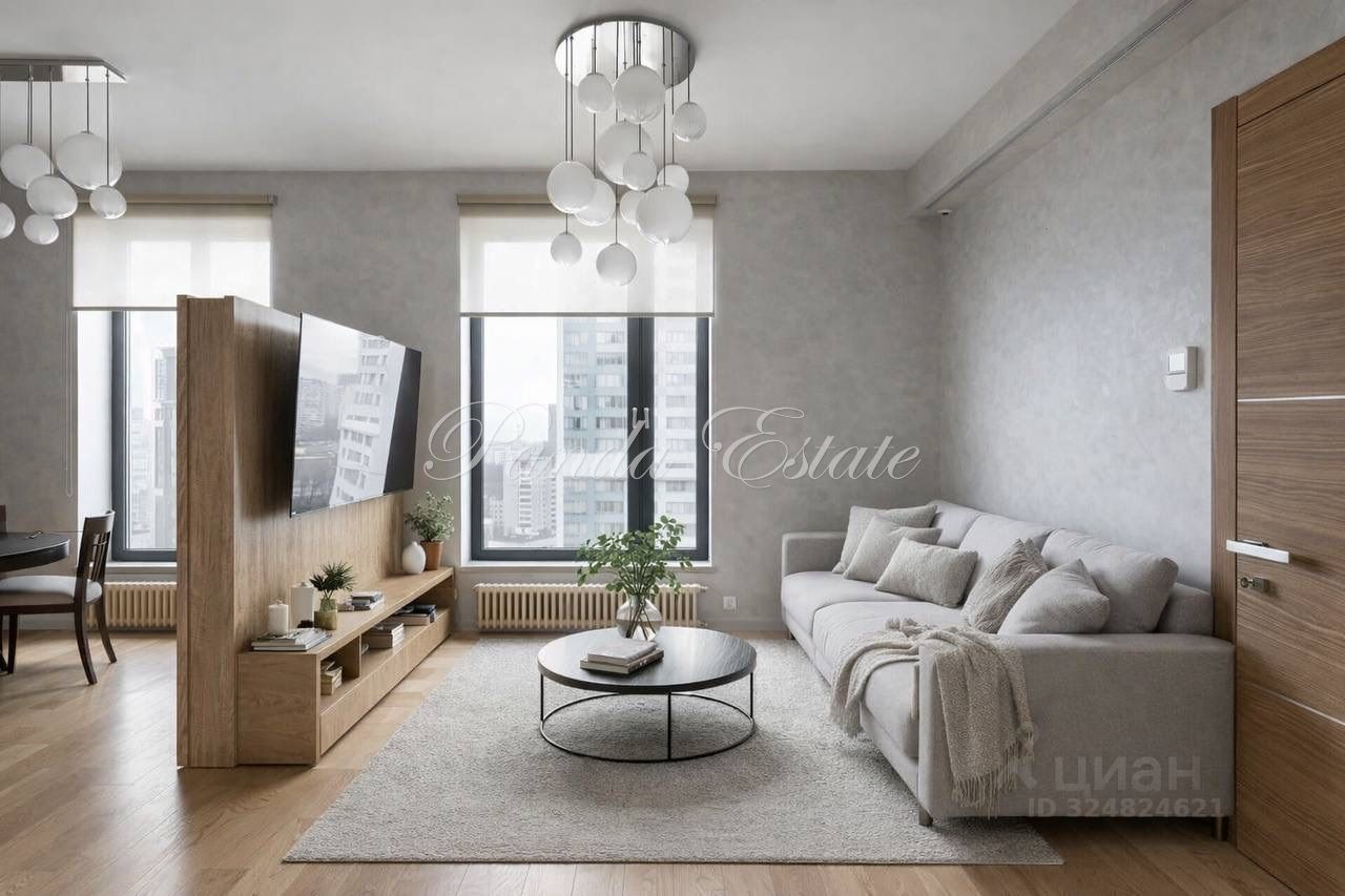 Шарм квартире придает гостиная к с уютной мебелью, где всегда приятно и комфортно проводить время и наслаждаться видами из панорамных окон. Высота потолков -3, 2м.