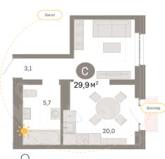 Квартира-студия с окнами в пол, балконом и предчистовой отделкой (переуступка).