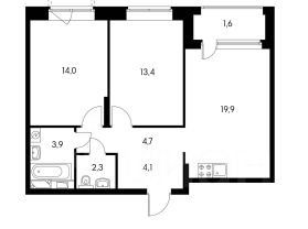 Планировка: Кухня-гостиная с выходом на балкон, две изолированные спальни, совмещенный санузел и просторный холл.