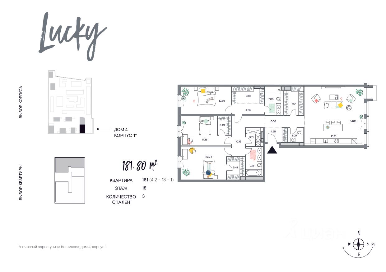 Продаётся 3 - комнатная квартира в готовом доме (Корпус 4.2), общей площадью 181.8 кв.м., на 18 этаже. Квартира сдается с премиальной отделкой, включающей оборудованную кухню и ванные комнаты.
