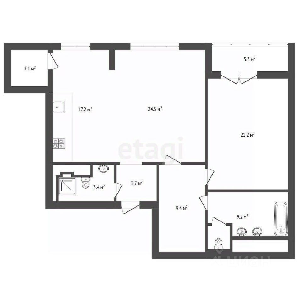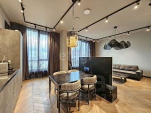 Планировка включает просторную кухню-гостиную, что делает пространство удобным как для жизни, так и для приема гостей. Кухня площадью 17 метров, оборудована всем необходимым. Гостиная 24.5 метра с зоной отдыха, ТВ и отличной акустикой. Квартира оборудована системой "Умный дом" и продается с готовым дизайн-проектом и качественным ремонтом, что позволяет заселиться сразу после оформления сделки.