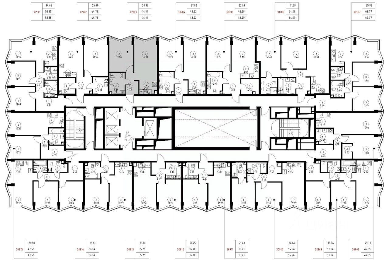 Продаётся 1-комнатная квартира общей площадью 44.18 м² без отделки в доме премиум-класса МИRА на 9-м этаже 24 этажного дома. Квартира расположена в корпусе 3.