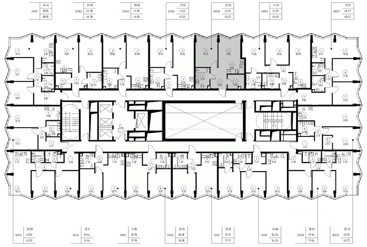 Продаётся 1-комнатная квартира общей площадью 46.29 м² без отделки в доме премиум-класса МИРА на 9-м этаже 24 этажного дома. Квартира расположена в корпусе 3.