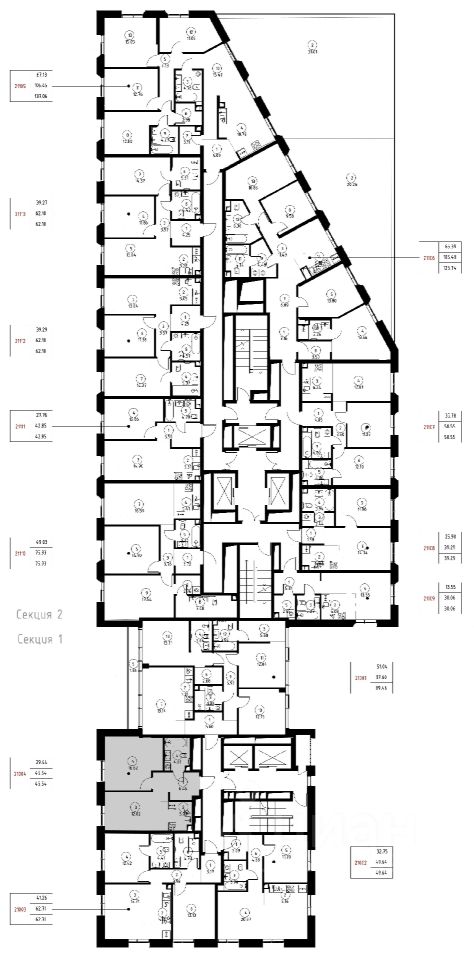 Продаётся 1-комнатная квартира общей площадью 45.54 м² без отделки в доме премиум-класса МИРА на 10-м этаже 23 этажного дома. Квартира расположена в корпусе 2.