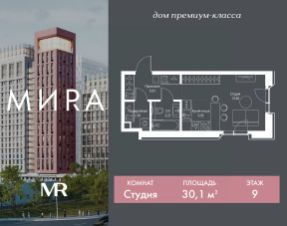 Продаётся студия общей площадью 30.06 м² без отделки в доме премиум-класса МИRА на 9-м этаже 23 этажного дома. Квартира расположена в корпусе 2.