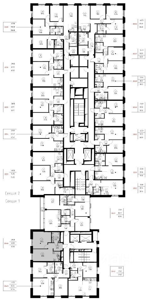 Продаётся 1-комнатная квартира общей площадью 45.18 м² без отделки в доме премиум-класса МИРА на 4-м этаже 23 этажного дома. Квартира расположена в корпусе 2.