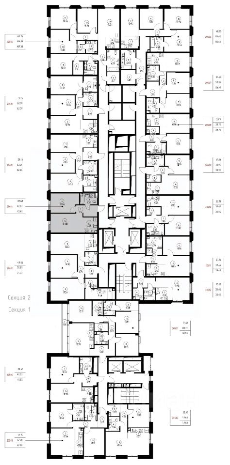 Продаётся 1-комнатная квартира общей площадью 42.67 м² без отделки в доме премиум-класса МИRА на 6-м этаже 23 этажного дома. Квартира расположена в корпусе 2.