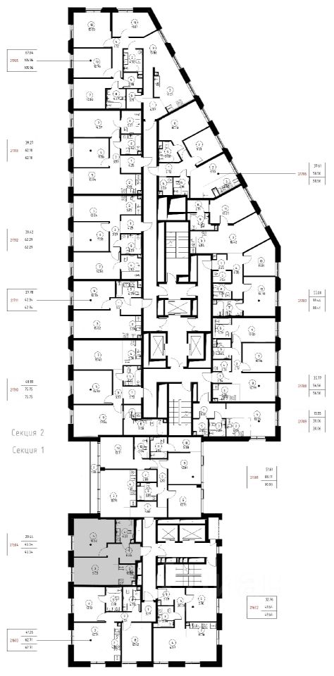 Продаётся 1-комнатная квартира общей площадью 45.54 м² без отделки в доме премиум-класса МИРА на 16-м этаже 23 этажного дома. Квартира расположена в корпусе 2.