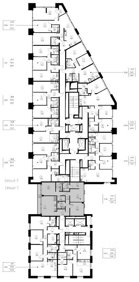 Продаётся 3-комнатная квартира общей площадью 90.03 м² без отделки в доме премиум-класса МИРА на 19-м этаже 23 этажного дома. Квартира расположена в корпусе 2.