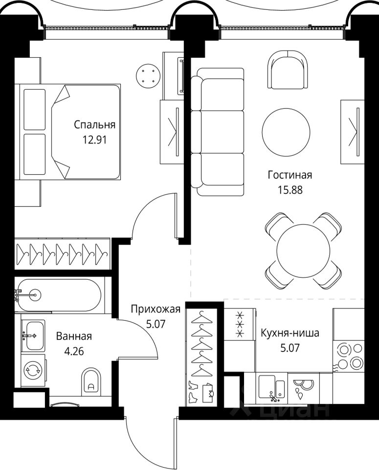 Продаётся 1-комнатная квартира общей площадью 43.19 м² без отделки в доме премиум-класса МИРА на 3-м этаже 17 этажного дома. Квартира расположена в корпусе 1.