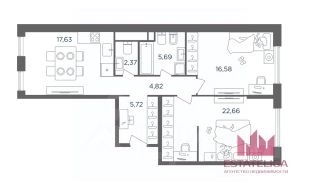 Id 58956. Продается ЕВРО 3-х комнатная квартира в ЖК Headliner!